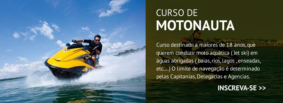 Curso destinado a maiores de 18 anos, para condução exclusivamente de moto aquática ( Jet ski) em águas abrigadas ( baias, rios, lagos , enseadas, etc....) O limite de navegação é determinado pelas Capitanias, Delegacias e Agencias.